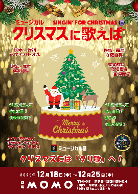 クリスマス。皆様は、いかがお過ごしですか? 計画は、お決まりですか?ミュージカル「クリスマスに歌えば」は、クリスマスをまるごと楽しむミュージカル。古今東西のクリスマスのエピソードを集め、楽しい生演奏と共に贈ります。「クリスマス・キャロル」「賢者の贈り物」などクリスマスの名作を絶品ミュージカル化! さらに、世界で起こったクリスマスの心あたたまるお話や面白話をたっぷり盛り合わせてお届けします。「月に歌えば」から人気の「トトネット テレビショッピング」では、クリスマスにちなんだ“あるもの”を販売! お馴染みの実力ミュージカル俳優が演じる素晴らしいノンストップの歌とダンス、パフォーマンス、そして、楽器演奏も!? 守屋由貴作曲のオリジナル・クリスマスソングが彩る、楽しさ半端ないクリスマスの定番ミュージカル「クリスマスに歌えば」を、どうぞクリスマスの計画に!